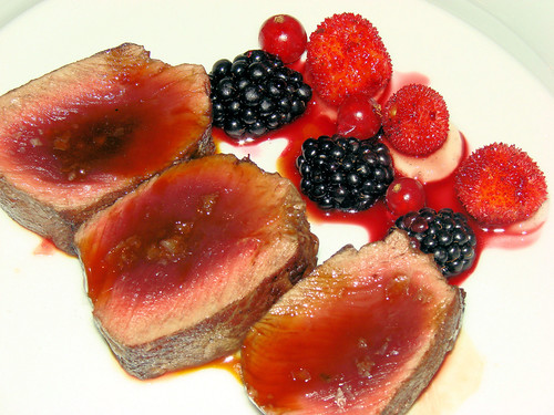 Buenísima pinta los platos que salen, especialmente los huevos y el pescado, parece, que lleva moras y madroños no?
